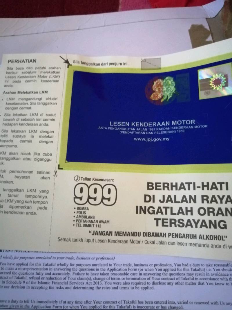 Rayuan lesen memandu tamat tempoh; Roadtax kereta insuran motorsikal terma perkhidmatan.